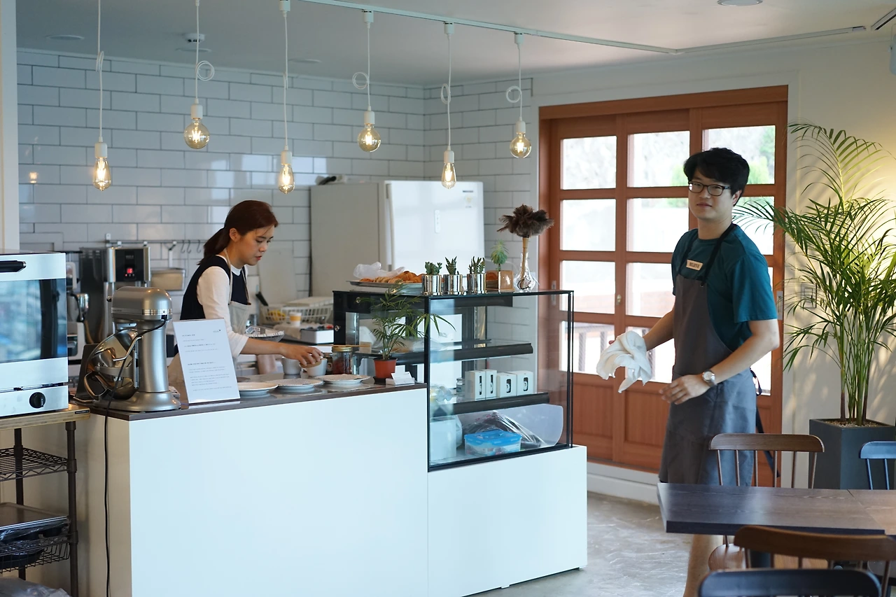 빵은 냉동 반죽 상태로 제공하며 한 달 치 수량을 미리 계산해 월에 한 번씩 정산 및 물건을 받아오기로 했다. 그리고 냉동고에서 빵을 꺼내 예약된 손님 수에 맞게 한 접시 예쁘게 나가면 되는 시스템이었다. 단점이라면 매일 아침 일찍 나가 빵을 구워야 했지만 자칫하면 나태해지기 쉬운 시골 생활의 게으름을 잡아줄 수도 있고 냉동인 관계로 재고 부담도 덜한 구조라 단점보다는 장점이 훨씬 많은 방식이었다.