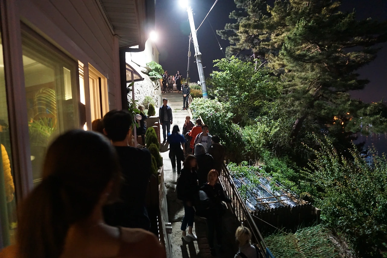 그날은 세명의 손님이 방문하셨고 체크인을 해드린 후 저녁 식사를 마치고 돌아오니 손님들이 카페 공간에 나와계셔 자연스럽게 이야기를 나누게 됐다. 마침 가게 근처에서 야간 촬영을 하고 있어 손님들과 함께 구경하며 이런저런 이야기를 나누는데, 모두가 자기 인생에서 마지막으로 연예인을 본 게 언제였는지 기억조차 나지 않는다고 했다.