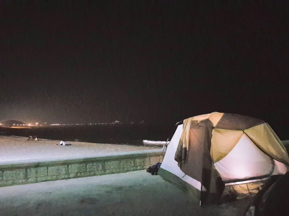 이곳에 와서 그동안 인연이 없던 캠핑에도 도전해보게 됐는데 사실 캠핑이라기보다는 집에 있는 살림을 캠핑 박스에 담아 그냥 바닷가로 나갔다는 게 더 적절한 표현 같다. 고가의 장비도 필요 없이 버너 하나면 충분했는데 캠핑에 자주 쓰이는 물건은 아예 트렁크에 상시 구비해두고 다녔다. 달리다 좋은 곳이 있으면 그냥 차를 세우고 돗자리를 펴면 그게 바로 캠핑이 됐다. 언제 바닷물에 발 담글지 몰라 수건도 항시 구비해뒀는데 이런 게 바로 바닷가 생활의 낭만이 아닐까 싶다.