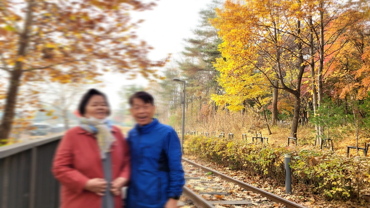 구화랑대역(노원불빛정원) 주차장을 찍으면 육사 주차장으로 안내한다. 주차장에서 정원까지 데크길을 지나는데 플라타너스 단풍에 가을가을 한 것이 딱 포토존이다. 아빠엄마 걸어가는 뒷 모습 한 컷. 안 되겠다 잠시 돌아서시라 해서 한 컷, 확대해서 또 한 컷. 언젠가라도 보면 위로와 미소가 지어질 것 같은 기분 좋은 순간이다.