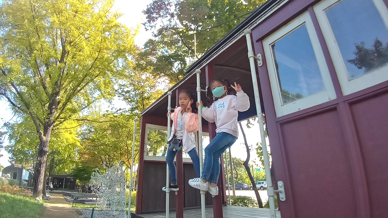 기온도 적당한 것이 늦가을 즐기기에 딱 좋은데 아이들이 학교에서 돌아올 시간이 다 되어간다. 나도 아빠의 마음도 급해져 인증샷 몇 컷 찍고, 공원의 남은 곳은 성큼성큼 둘러본 뒤 차에 올랐다.