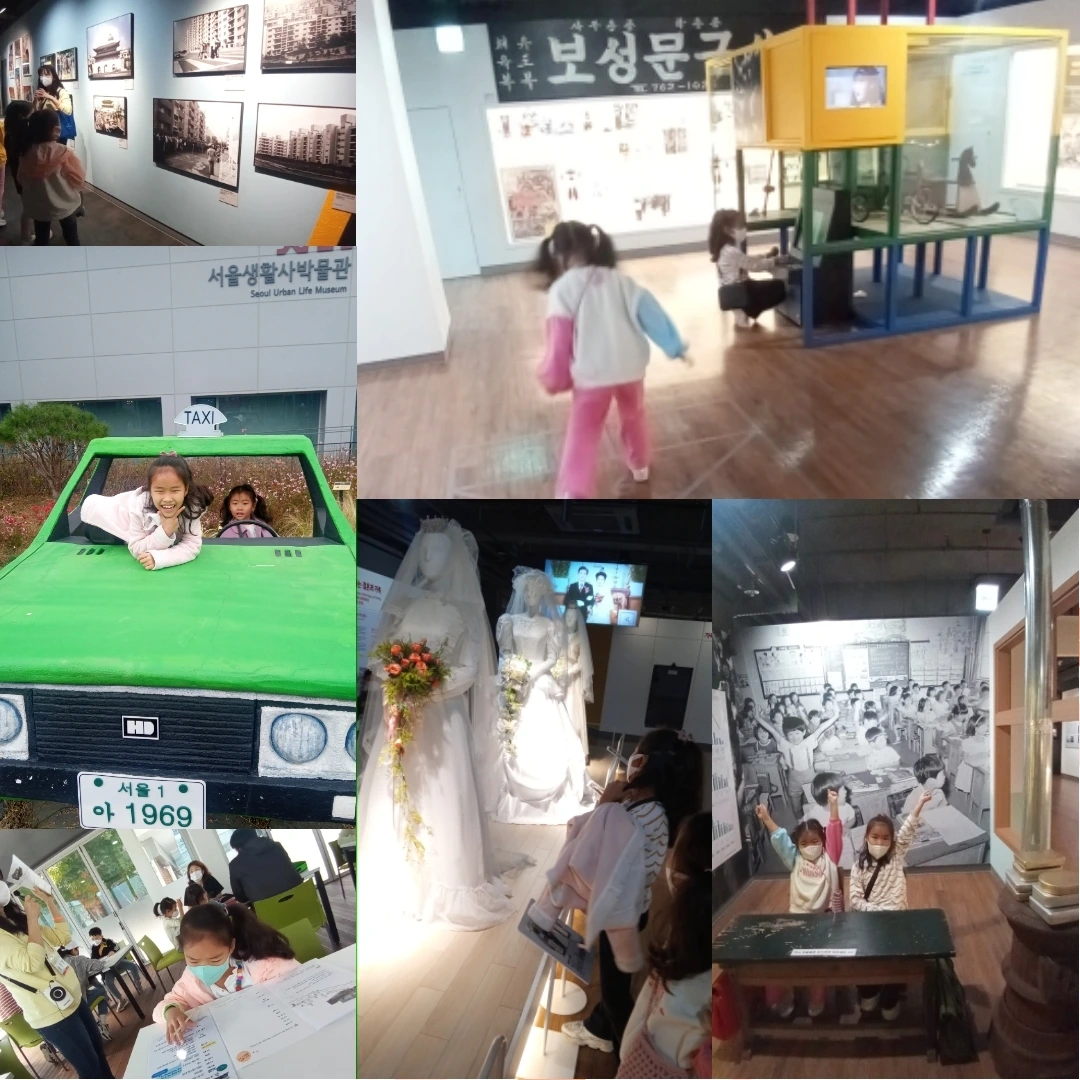 드디어 박물관이다. 오늘의 프로그램은 박물관 내부를 관람한 후, 교육실에 모여 조사 결과 보고서나 그림 일기 두 개 중 하나를 작성하는 것으로 끝난다. 서은이는 1층- 한국전쟁 당시 한강을 건너 피난하는 모습, 그리고 전쟁 이후 집은 적고 사람들은 많을 때 짚과 판자로 만든 집 앞에 어린이가 서 있는 사진이 충격적이었나 보다. 엄마, 여기서 어떻게 살아? 한다. 다른 나라도 아니고 우리 나라에서 불과 70여년 전 사진이다.