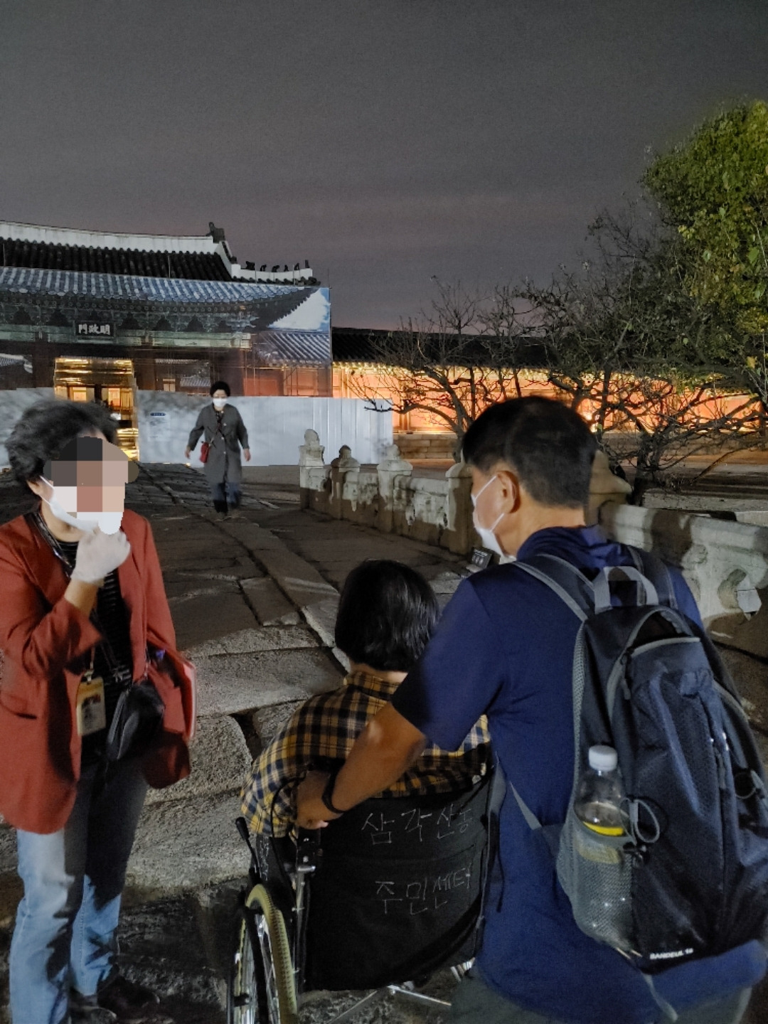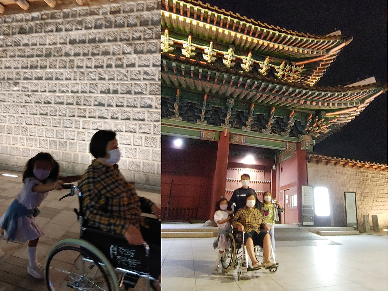 병원 진료차 서울을 방문하신 엄마와 창경궁 나들이를 예약했는데 참고란에 엄마 사정을 썼더니 따로 전화가 왔다. 우리 엄마는 5년 전에 두개저 뇌종양으로 큰 수술을 받으셨다. 목숨은 부지하였으나 시력이 더 나빠져 중증 장애등급을 받았고 그 외 여러 증상들로 불편함을 안고 사신다. 천천히 걸으실 수는 있으나 7시면 어둡기도 하고 길도 울퉁불퉁할 터라 휠체어를 이용할 참이었다.