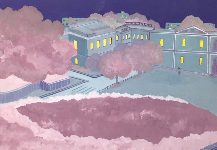 마카오 성바울성당을 바라보며 체조하는 아저씨.