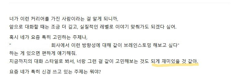 그래서 이다음에 제가 거쳐온 커리어를 알려줬더니 이렇게 대답을 합니다.