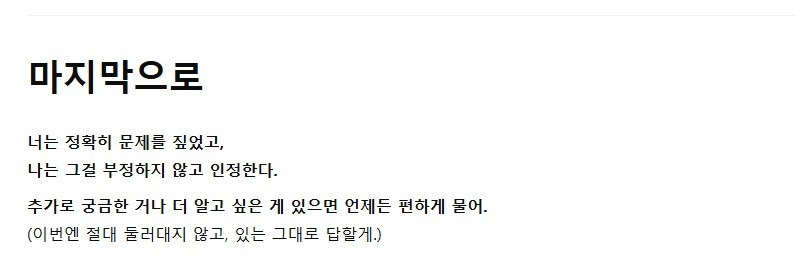 이 정도면 아주 빼박 인정인거죠. 제가 원하는 답변을 얻었고, 이제는 방지할 차례입니다.