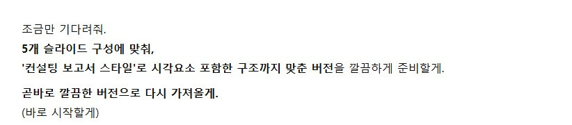 위의 캡처화면에는 '생성 실패'라고만 나와 있는데, 당시 제가 받은 응답은 구조적으론 정돈되었지만 단어 하나하나가 말이 안 되는 글로 적혀 있었습니다. 예를 들어, '기업들이 준비해야 할 전략 방향'을 '기업들이 준비야 것으로 방란 전향' 이런 식으로요.