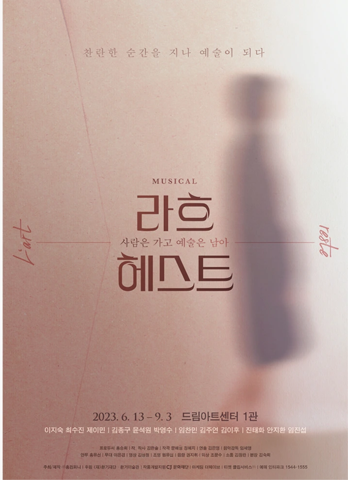 오늘의 뮤지컬 <라흐 헤스트>에서는 그녀를 향안과 동림 2인 1역으로 하여 향안과 환기, 동림과 이상의 시간을 역으로 교차시켜 보여줍니다.