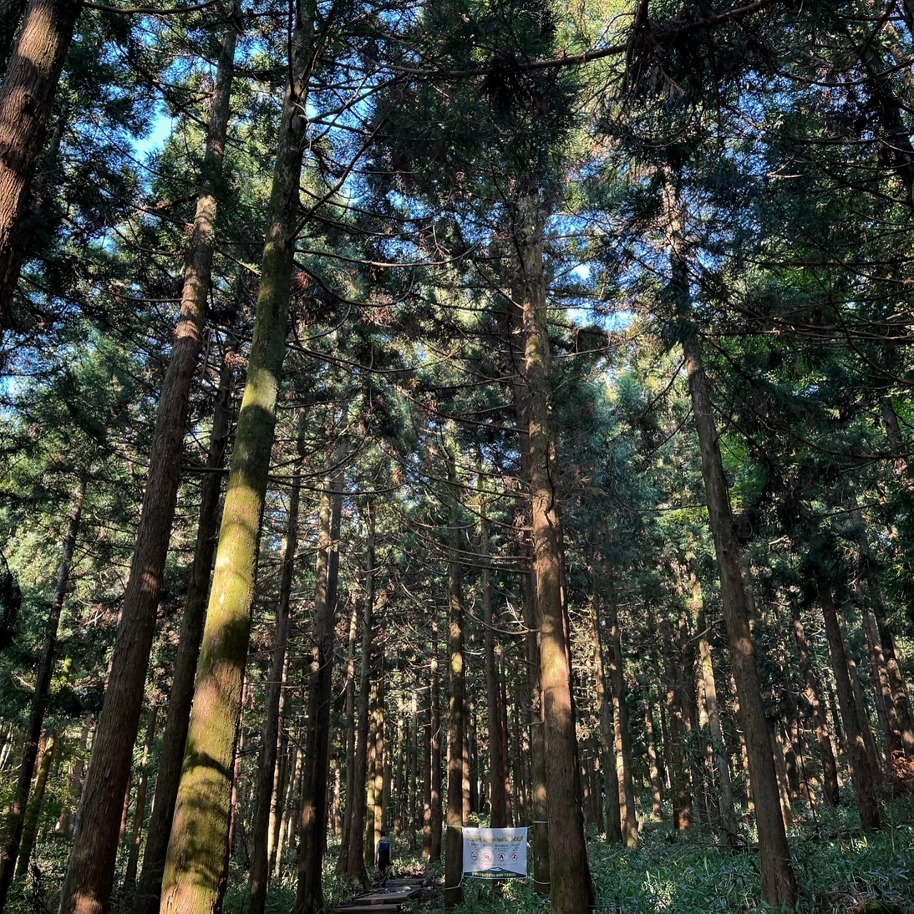 처음 두 시간가량은 울창하고 가지런한 숲길을 산책하듯 걸었다. 얼핏 비슷해 보이지만 시간이 지남에 따라 아기자기한 잎의 서어나무, 때죽나무, 졸참나무들은 사라지고 어느새 하늘로 쭉쭉 뻗은 삼나무 숲이 시원하게 펼쳐졌다.