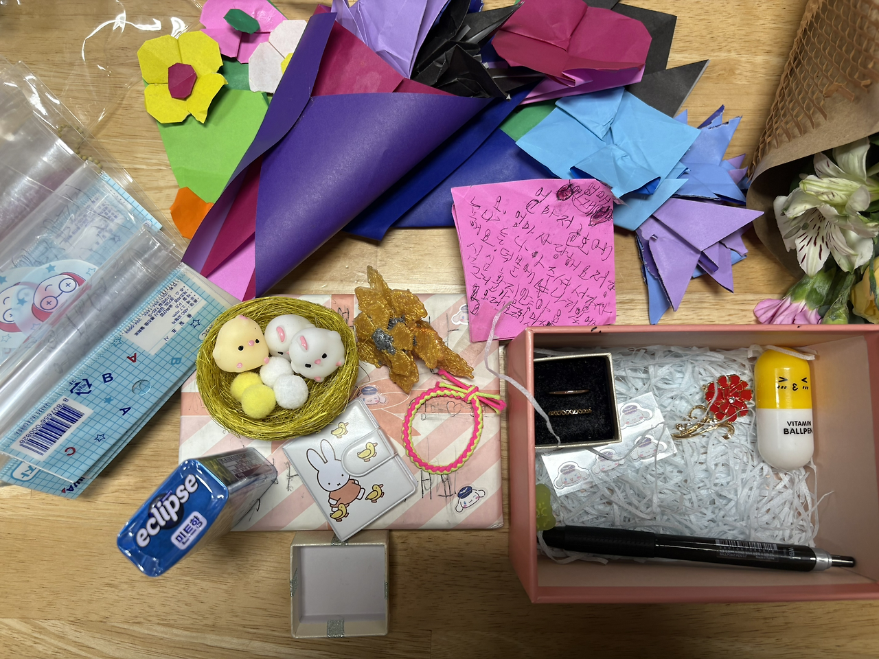 둘째가 남자아이인데 예쁜 걸 유독 좋아한다. 감성적이기도 하고 세심한 둘째가 고른 선물이었다. 그 외 다양한 선물들을 하나씩 사서 모으고 있다고 했지만, 이 브로치가 가장 비싸다고 가장 이뻤다고 하나 남은 걸 사 왔다며 행복해하는 얼굴이었다.