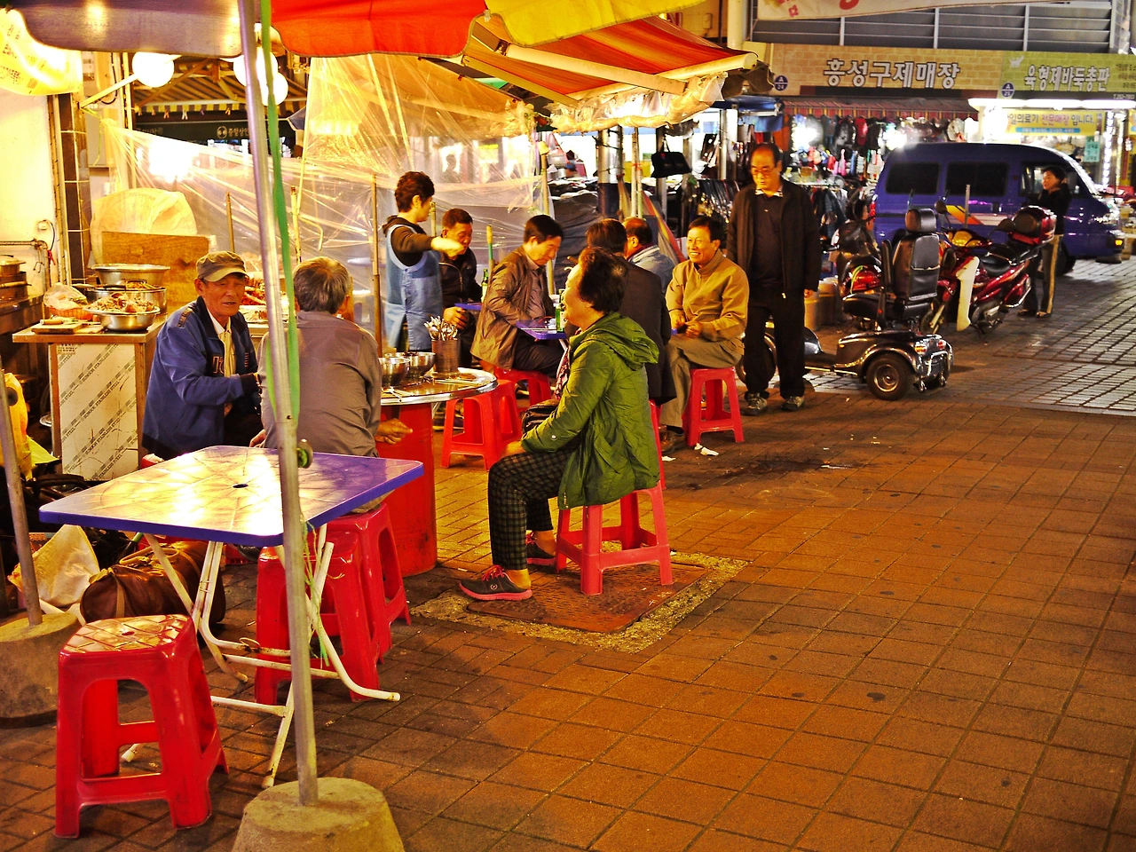 낮의 시장이 옛 생각을 나게 하는 장면들이 많이 보인다면, 해가 기울어 저녁이 되어가면 먹자골목의 풍경 또한 예술이다. 물론 젊은 층은 드물기는 하지만 그럼에도 시장의 흥은 올라간다.