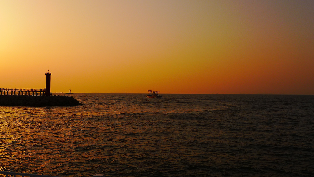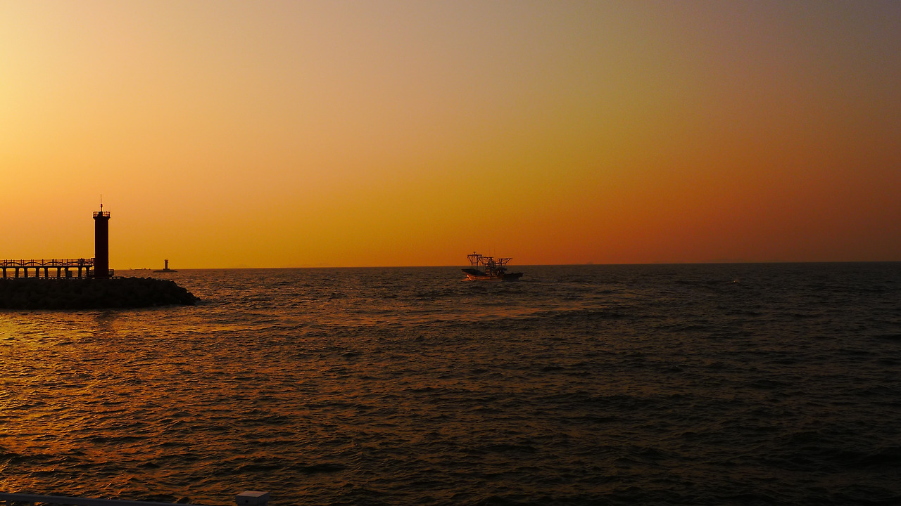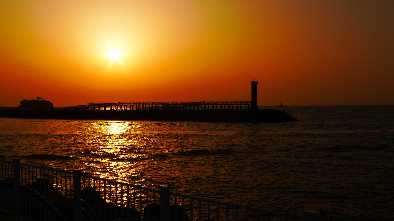 점점 바다 한 켠으로 해가 멀어져 가면 노란빛으로 하늘이 수놓아진다. 조금씩 조금씩 넓어져가는 노란빛을 바라보고 있노라면 매주 낚시를 하러 이곳에 온다는 강태공의 모습마저 예술로 다시 태어난다.
