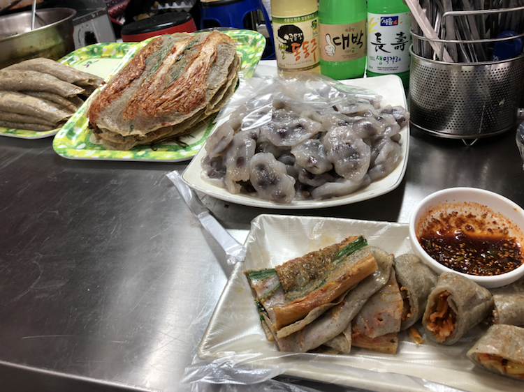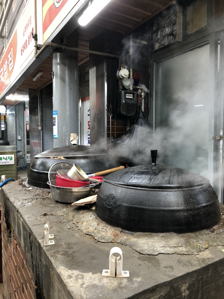강릉중앙시장과 성남시장이 붙어있는데 속초와 마찬가지로 닭강정이 인기다. 작은 닭집에서 갓튀겨낸 닭 한마리를 사들고, 풍물시장에서 한장에 천원짜리 메밀전을 먹고 감자떡을 포장했다. 가마솥에 끓여낸 한우육수와 기름을 떼어낸 소머리를 넣은 소머리 국밥을 먹으니 속이 풀리는 했다. 여행의 마무리로 적당했다.