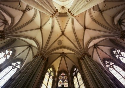 고딕 양식의 정점을 보여주는 두 개의 첨탑은 157m로 세계에서 가장 높은 고딕 교회 중 하나다. 내부에 들어서면 하늘로 치솟은 리브 볼트(Rib Vault) 천장과 스테인드글라스의 빛이 만들어내는 성스러운 분위기에 압도된다. 고딕양식은 하늘에 좀 더 가까이 가고자 하는 마음을 뾰족한 첨탑과 예배당 내부의 엄청난 높이로 표현했고, 로마네스크 양식에 비해 빛을 많이 들여 밝은 분위기를 만들어 준다.