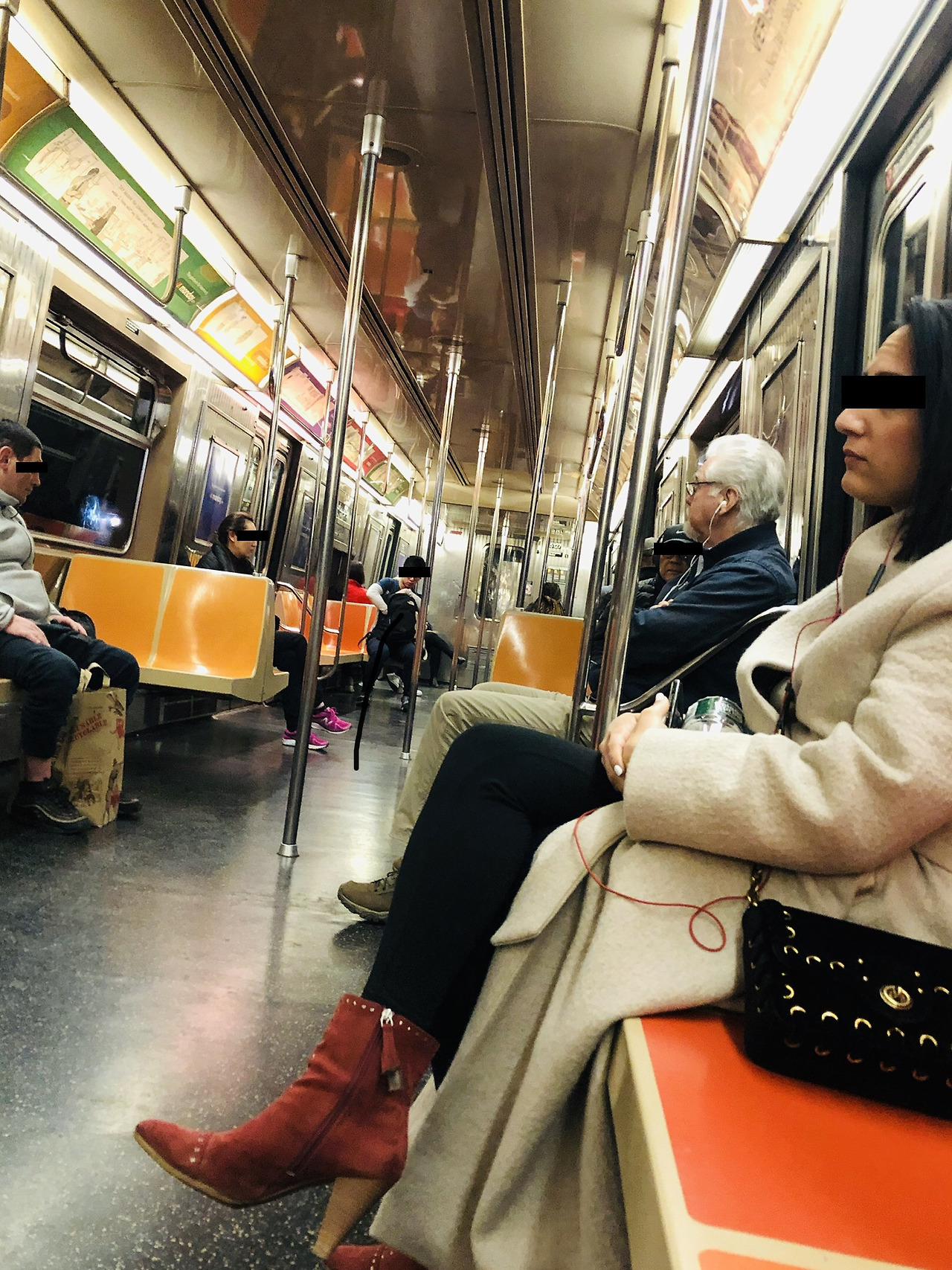 오늘 낮 뉴욕 지하철. 드문드문 앉아있는 승객 중 마스크는 찾아볼 수 없고 서로를 경계하거나 피하는 모습도 볼 수 없다.