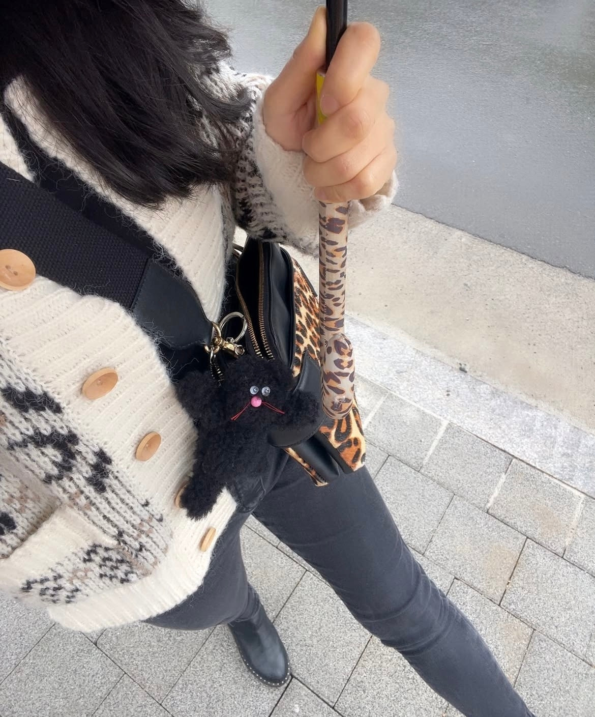 가장 기본적이고 쉬운 코디는 블랙에 호피 한 스푼입니다. 작은 면적부터 시작하세요. 처음부터 호피 스커트, 호피바지 안됩니다. 운전면허 딴 날, 바로 고속도로부터 가시는 분 안 계시지요? 우리 욕심내지 말아요. 천천히 한 걸음씩 호피와 가까워 지기로 해요. 호피가 도망가지 않도록요. 잘 입으면 세상 멋지고 따라 하고 싶은 힙한 패션이지만 한 끗 차이로 포수가 될 수도 있는 위험한 아이입니다.