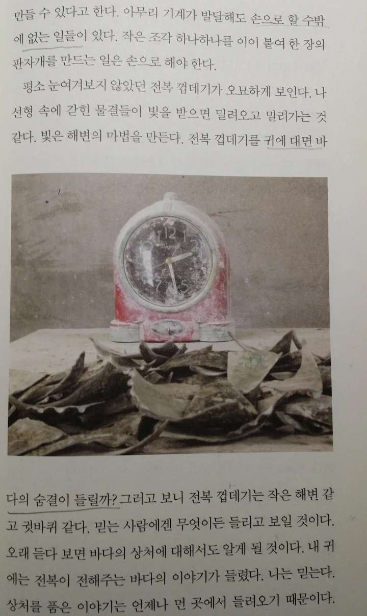 책 위에 연필로 밑줄을 긋고 옮겨 보았다.