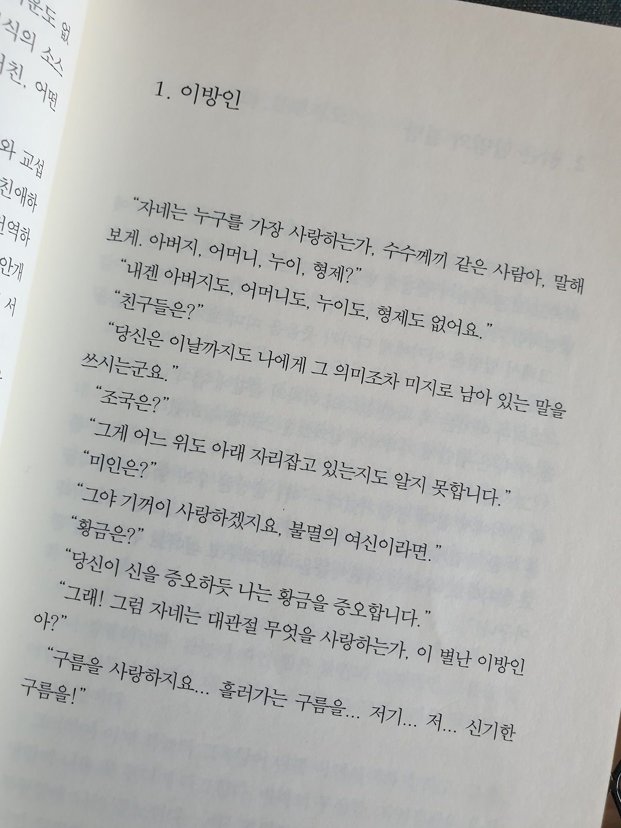 보를레르의 '이방인'에 잘 나타나 있지, 박목월의 '나그네'에서는 한술 더 떠서 '달'까지 등장시켰다네. 밤이라서 그렇다지.