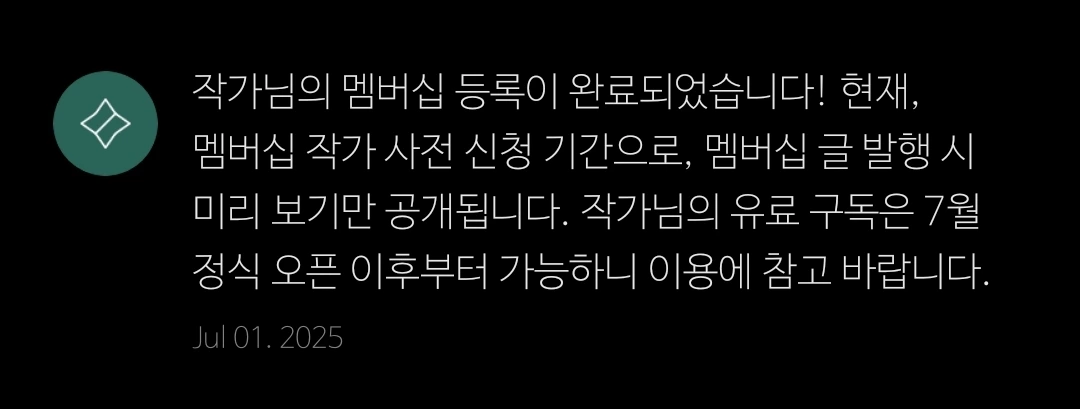 멤버십 작가 등록이 완료된 것이 맞지 않나? 멤버십 작가 신청을 등록했는데ㅡ 단순한 멤버십으로 등록한 것인가