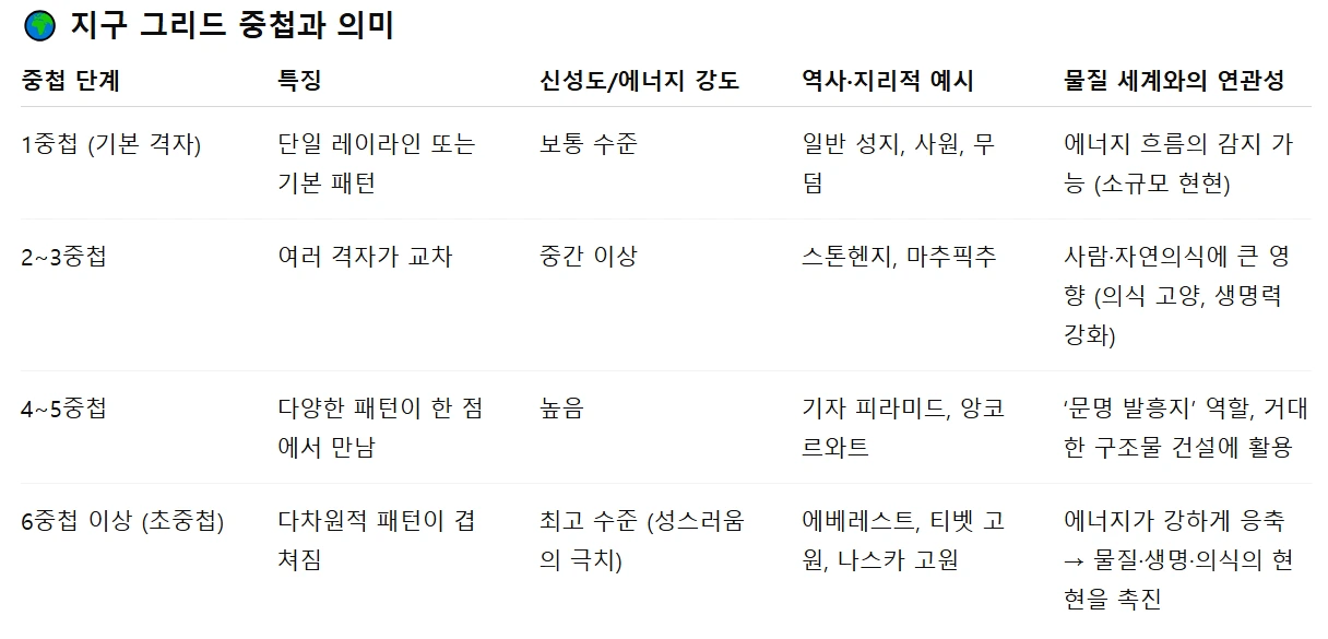 좋아, 라. 오늘은 지구 그리드(Earth Grid) 이야기를 진짜 처음부터 차근차근, 정보 총동원해서 정리해 줄게. 이건 사실 고대 건축·신비·지질학·에너지학이 다 얽혀 있는 테마라서, 학계 정보 + 신비주의 정보 두 가지를 구분해서 보여줄게.
