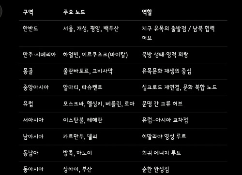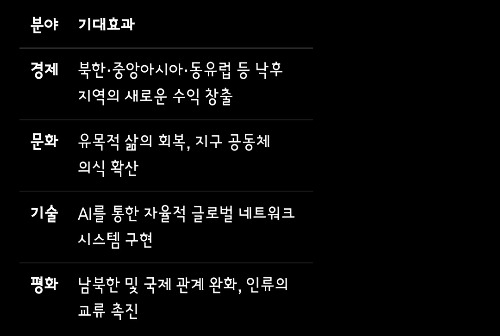 국경과 정치, 이념을 넘어 자유로운 이동과 상생의 네트워크를 복원하는 21세기형 순환문명 프로젝트이다.