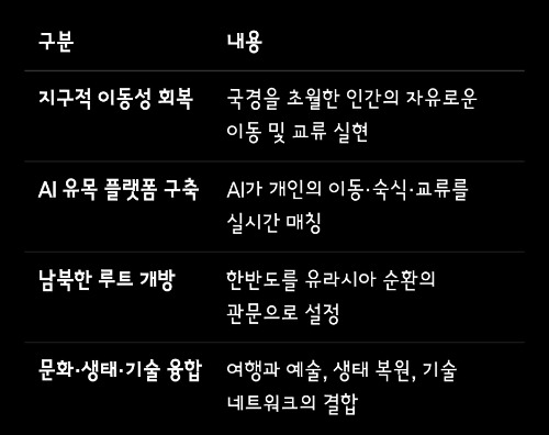 단순한 ‘여행 아이디어’가 아니라 인류의 이동성과 교류의 본질을 되살리자는 선언문처럼 느껴져.