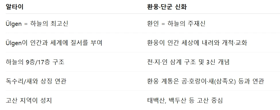 단군 신화는 “천문–신단수–하늘에서 내려옴–천신의 아들”을 온전히 보존하고 있어.