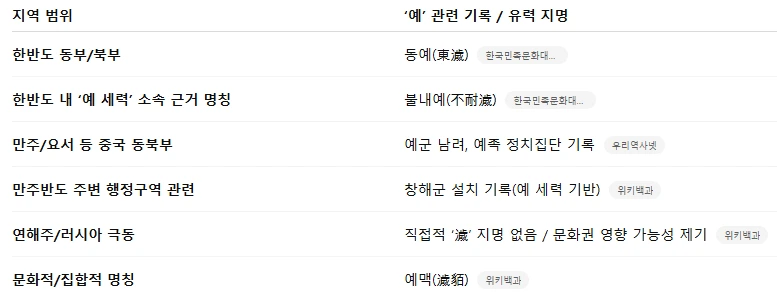 중국 문헌(《삼국지》 위서 동이전 등)에서 “예맥”이라는 조합이 등장하는데,