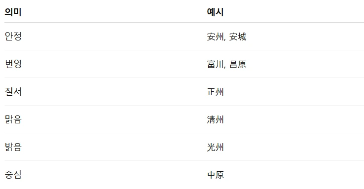 - 한자 의미 중심의 보편 지명