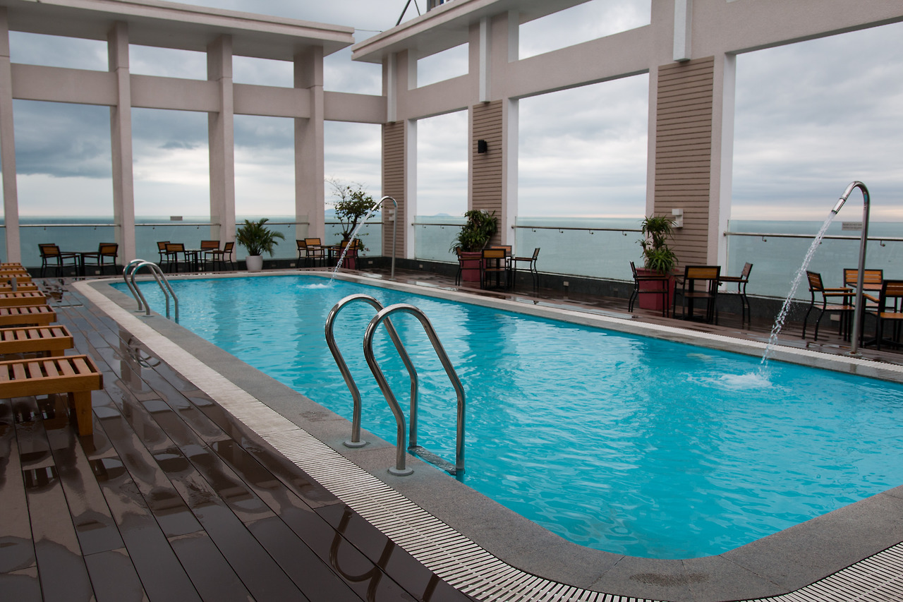 내거 머문 '다이아몬드 씨 호텔(Diamond Sea Hotel)' 조식은 괜찮은 듯 별로였다. 내가 경험했던 모든 호텔 뷔페들은 미약한 실속을 화려함으로 포장했던 것 같다. 새벽에 비가 내렸었나보다. 20층 꼭대기의 수영장은 텅텅 비어있었다. 젖어있는 테이블과 선베드, 그리고 물에 발을 담구기조차 힘들게 만드는 찬바람만이 존재했다. 그래도 수영장은 좋았고, 위쪽 테이블은 운치있었으며, 내려다보는 풍경은 멋졌다.