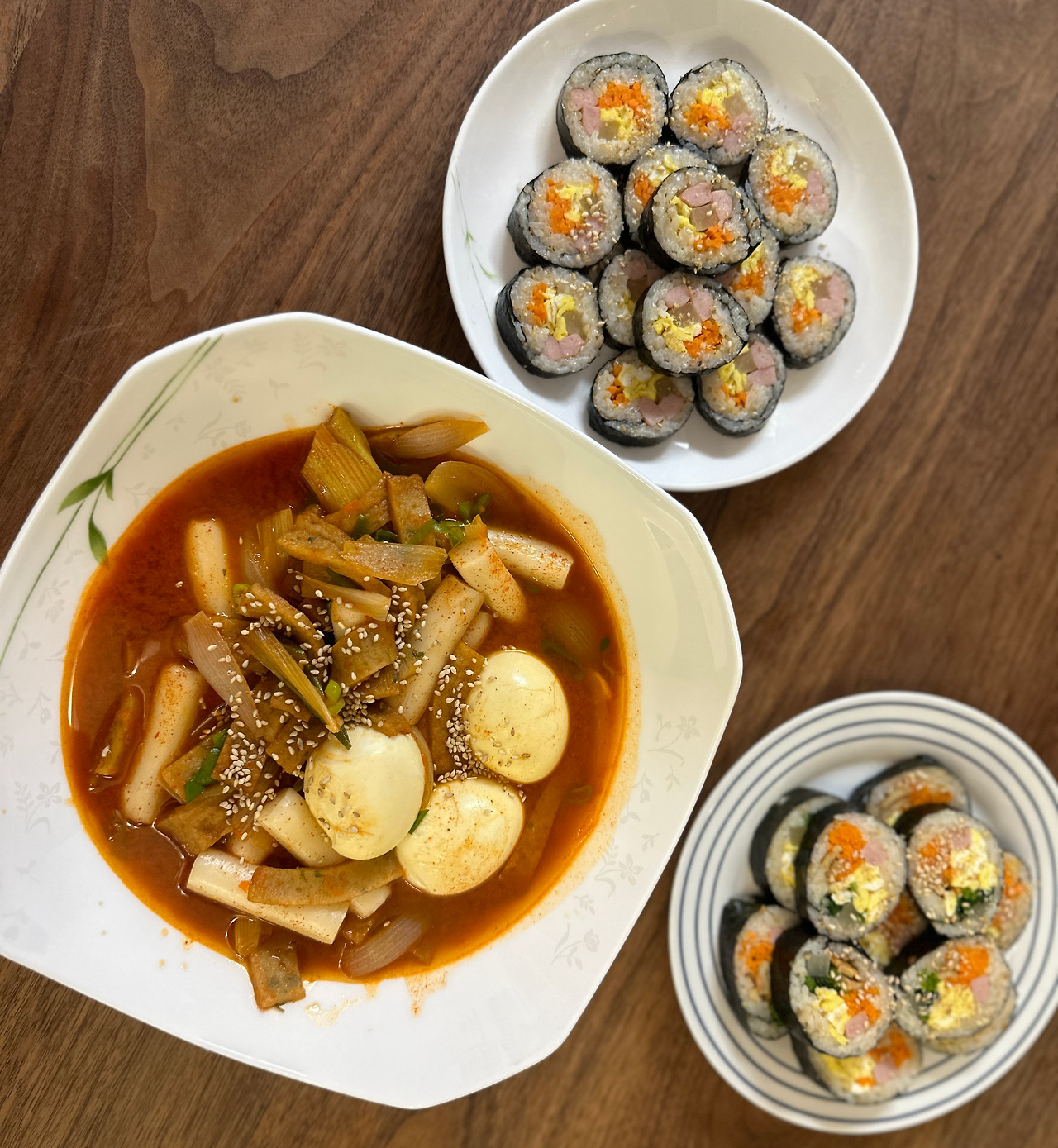 오늘 아침은 달짝지근한 떡볶이를 오더 내리시는 둘째 아드님. 좋아하지 않는다는 걸 알지만 국물에 찍어먹으면 맛있을 거란 말로 유혹해 후다닥 말아낸 김밥과 함께 한 끼를 차려내었다. 계란도 세 개 삶아 넣어주니 아침부터 든든하게 한 끼 뚝딱이다.