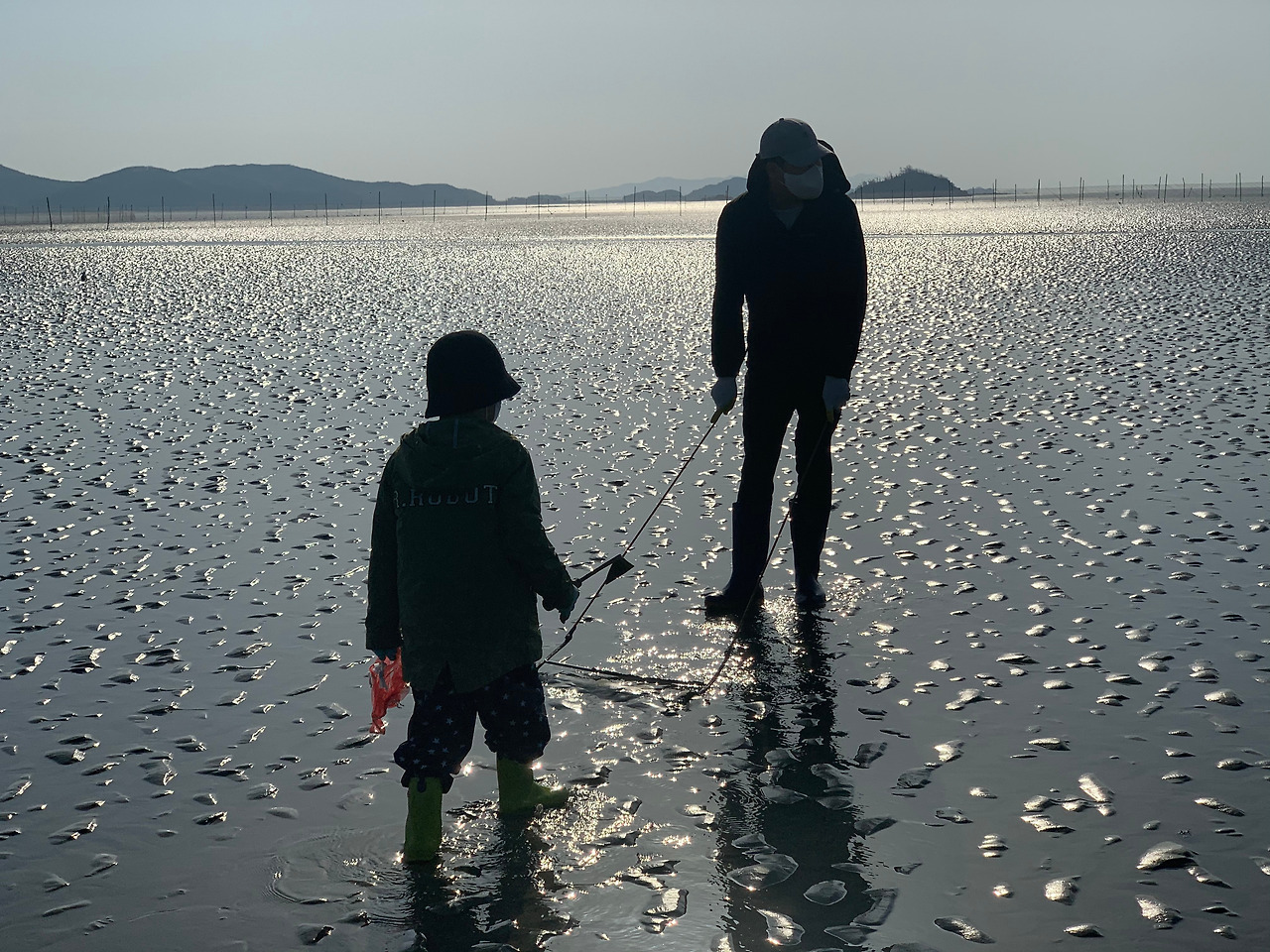 우리는 얼른 아침식사를 든든하게 마치고, 물때 시간에 맞추어 바닷가로 나가봤다. 그레와 호미를 챙겨, 오늘은 장화바지를 꼭 입기로 약속했기에, 아이들을 감기에 걸리지 않도록 단단히 챙겨 입혔다.