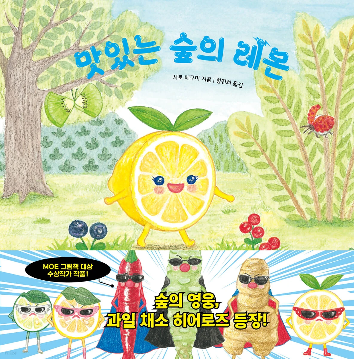 귀엽지만 조금 거부감이 들었던 '맛있는 숲의 레몬'이 이런 방향으로 이야기가 전개될 수 있다는 사실에 조금 놀랐다. 책의 뒤표지에 '과일 채소 히어로즈 시리즈'라고 되어 있는 것으로 봐서 다양한 과일과 채소를 오래 관찰하며 그 과일의 특징을 바탕으로 한 우리에게 익숙한 이야기 전개를 보여주는 시리즈를 계속 쓰고 있을 것 같다. 여전히 경계를 나누는 책의 내용은 마음에 들지 않지만 레몬의 특징을 잘 살려 재미있게 과일과 채소의 특징을 이해하기는 좋을 듯하다. 다 읽고 아이와 레몬을 잘라서 향기를 맡아보고 레모네이드 한잔 해도 좋을 듯하다.