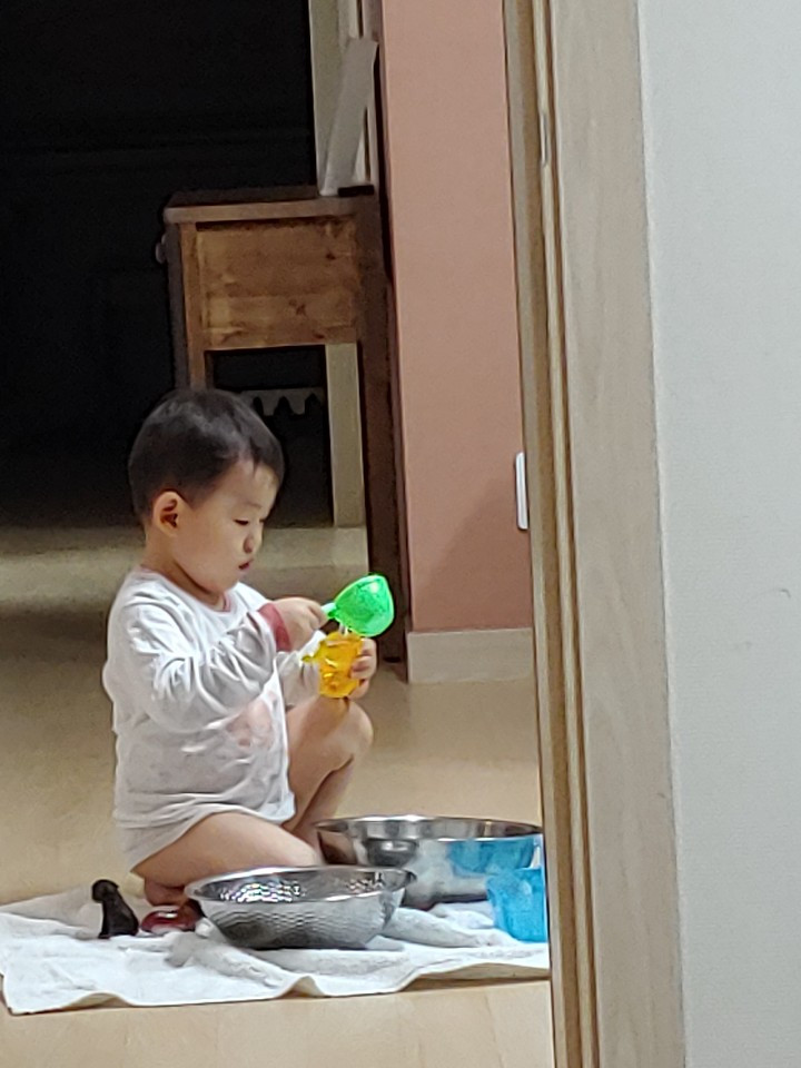 이전에 "션은 어디에 살아?" 물으면 "션 하우스 house" 라 답하던 아이는 이제 "Earth 지구"라고 말한다.