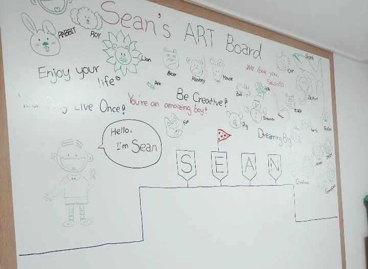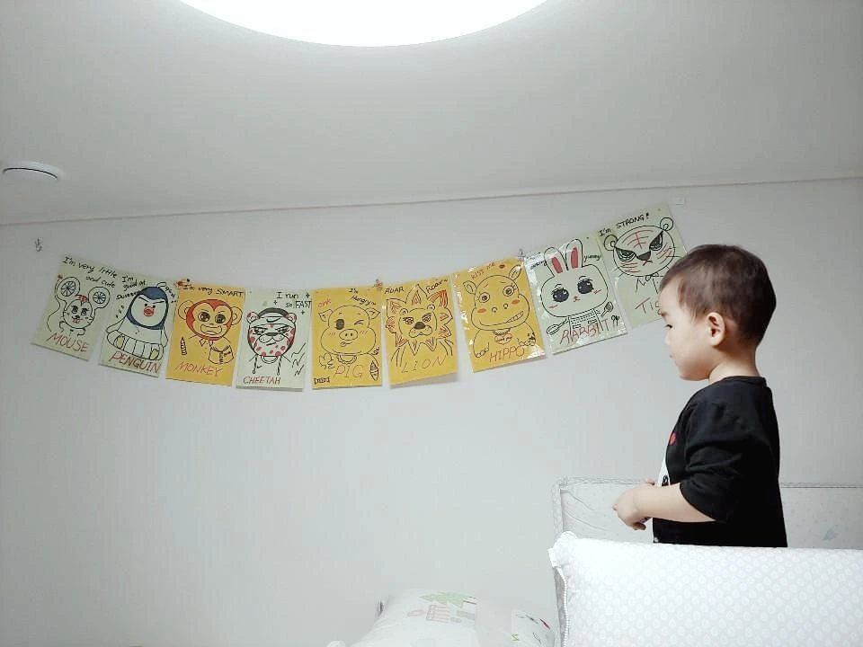 아이가 좋아하는 그림도 그려 걸어주고, 소품 하나를 사도 영어로 된 것은 없나 체크해보기도 한다.