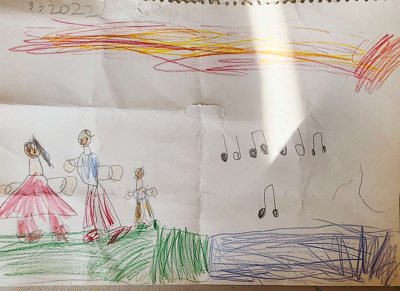 종종 션이는 그림을 그릴 때 그리는 것들이 있다. 하늘을 칠할 때는 파란 하늘뿐 아니라 붉은 하늘을 그린다. 파도 따라 아름답고 신비로운 소리를 내던 바다오르간. 이것도 우리 션이 작품에 자주 등장하는 소재다.
