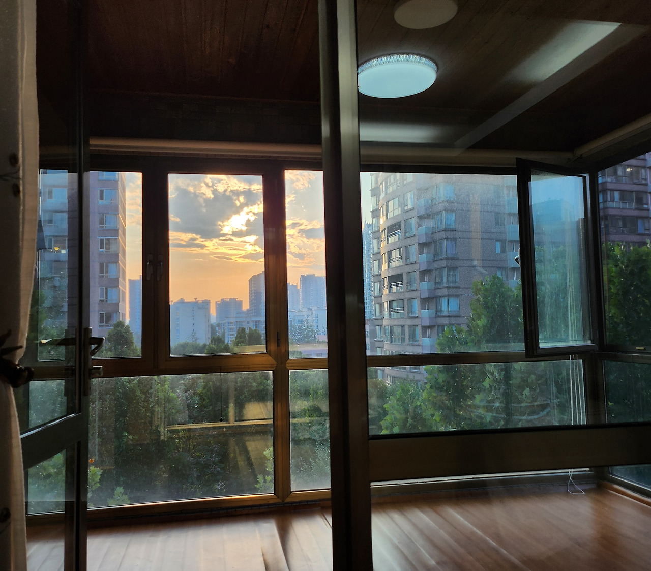 북경의 우리 집은 남쪽에도 그리고 서쪽에도 큰 창이 있어 해가 하루종일 들어온다. 저녁에는 이렇게 예쁜 석양도 만날 수 있다.