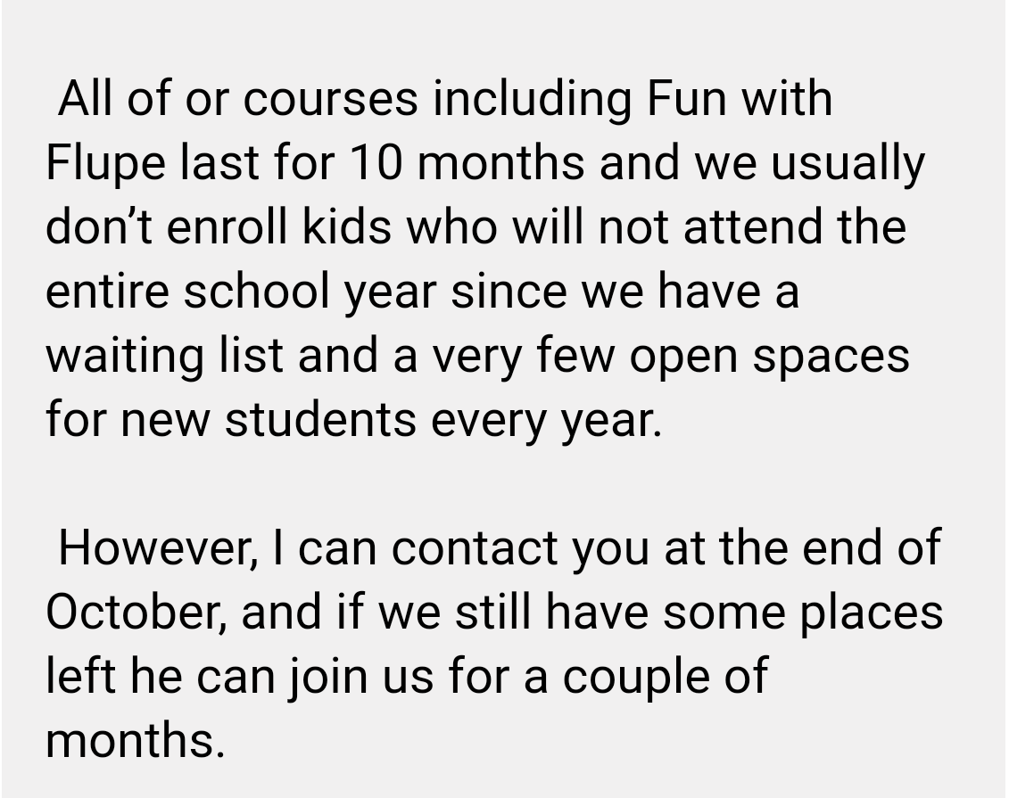 크로아티아로의 출국 전, 헬렌 도론 자다르에 문의를 했고, 10개월을 전부 다니지 못하는 아이는 등록을 못한다는, 혹 가능해도 기회가 굉장히 적다는 안타까운 메시지를 받았다.