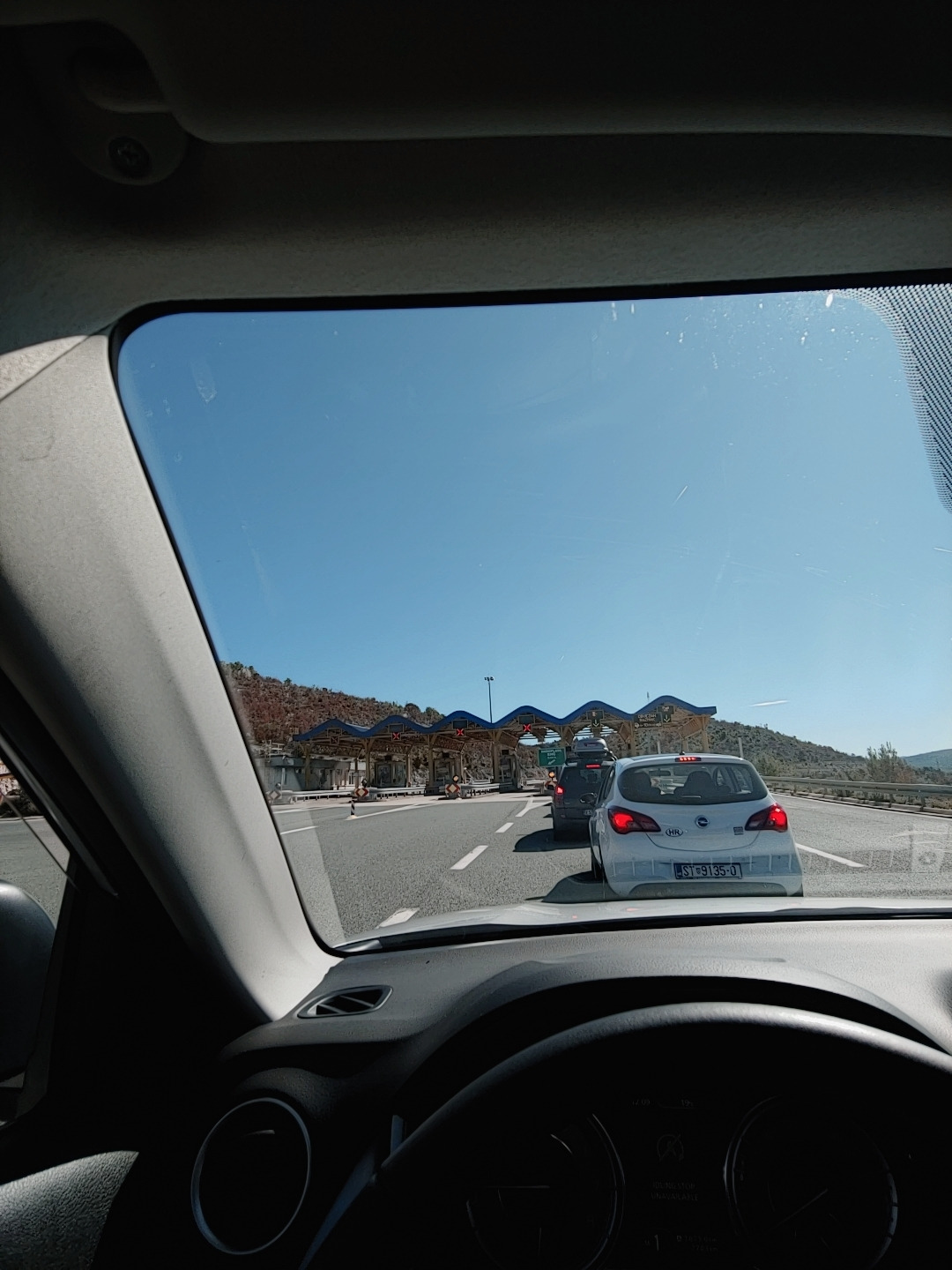 톨게이트 앞 길게 줄 선 차들크로아티아의 톨게이트는 우리와 같은 방식이다. 처음 고속도로를 타고 버튼을 눌러 표를 뽑고, 나갈 때 정산하면 된다.