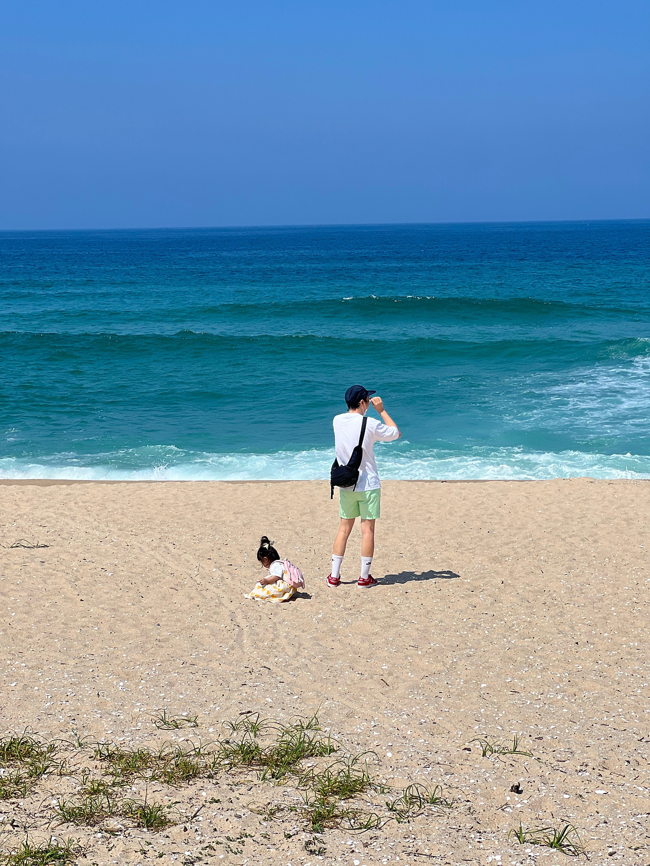 드넓은 경포해변은 여름 성수기가 아니더라도 그냥 보는 것만으로도 가치가 있다. 다만 이곳의 모래는 다소 알이 굵은 편이라, 고운 모래를 기대했다면 실망할 것. 남쪽보다는 그래도 북쪽 해변이 조금 더 모래가 곱기 때문에, 만남의 광장에서 왼쪽, 라카이 샌드파인이 위치한 앞쪽 해변에서 모래놀이를 하기를 추천한다(애엄마의 시선).
