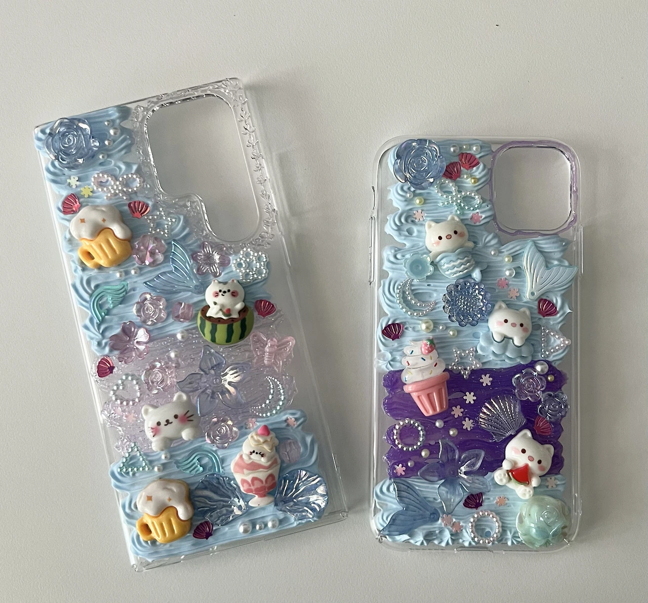 폰케이스를 좋아한다. 휴대폰 하나당 약 스무 개의 케이스를 사서 쓰는 것 같다. 그중에는 투명 케이스를 사서 직접 꾸미는 것도 다수 있다. 스티커와 마스킹테이프만으로 꾸미기도 하고, 생크림본드와 알록달록 모양도 색깔도 다양한 파츠로 꾸미기도 한다. 생크림본드와 파츠로 꾸미는 걸 ‘데코덴’이라고 부르는데, 일본에서 유래된 문화로 ‘전화기(뎅와)‘를 ’꾸민다(데코)‘는 뜻이다. 화려하고 예쁘고 귀여운 걸 좋아하는 내게 제격인 취미다.