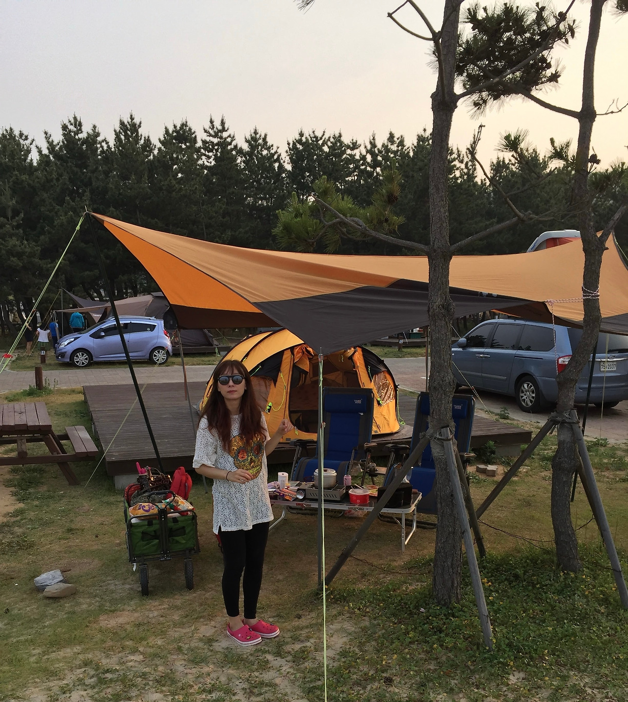 그렇게 록페스티벌에서 캠핑을 즐기다가 점차 ‘꼭 락페가 아니더라도 캠핑을 하고 싶다’는 갈망이 생겨 캠핑을 시작했다. 처음 샀던 반자동 텐트는 산지 두 해만에 버렸다. 대신 지산 록페스티벌에서 대여용 텐트로 쓰던 원터치 팝업 텐트를 샀다(지금 생각해보니 그 많은 텐트를 치려면 팝업 텐트 외에는 답이 없었을 것 같다). 접어도 거대한 크기였지만 괜찮았다. 당시 우리는 아이가 없는 젊은 부부, 오로지 둘 뿐이었으니까.
