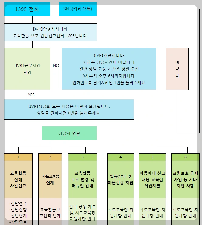 2024년, 교권침해 직통번호 1395 개통 / 9:00~18:00 운영, sns 소통은 상시