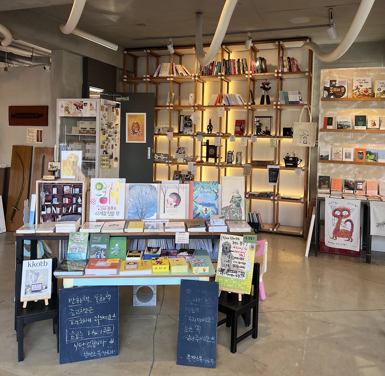 서점과 북카페를 겸하는 작은 공간이었는데, 대형 서점과 달리 작은 동네 책방 느낌으로 책마다 고심의 흔적이 묻어나 책을 즐겨 읽는 입장에서 즐거웠다.