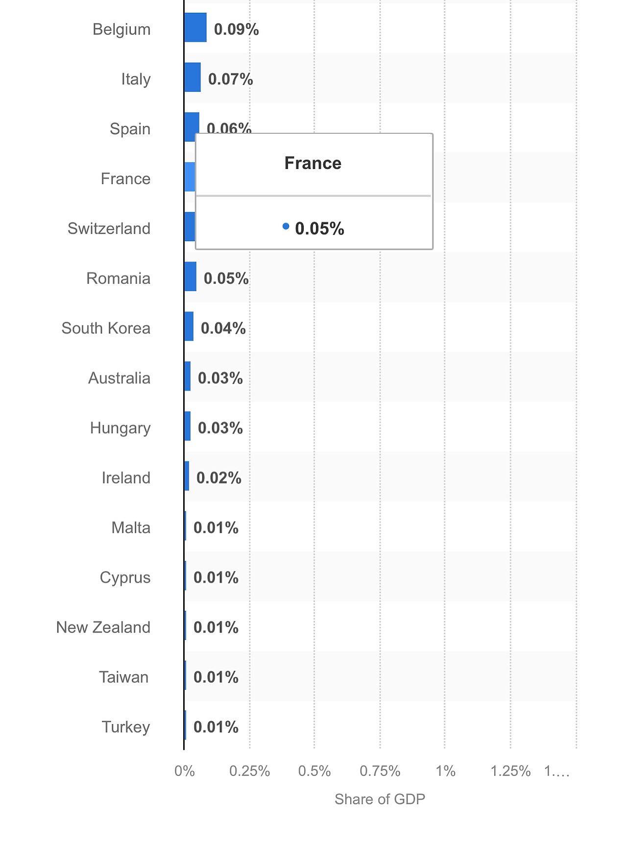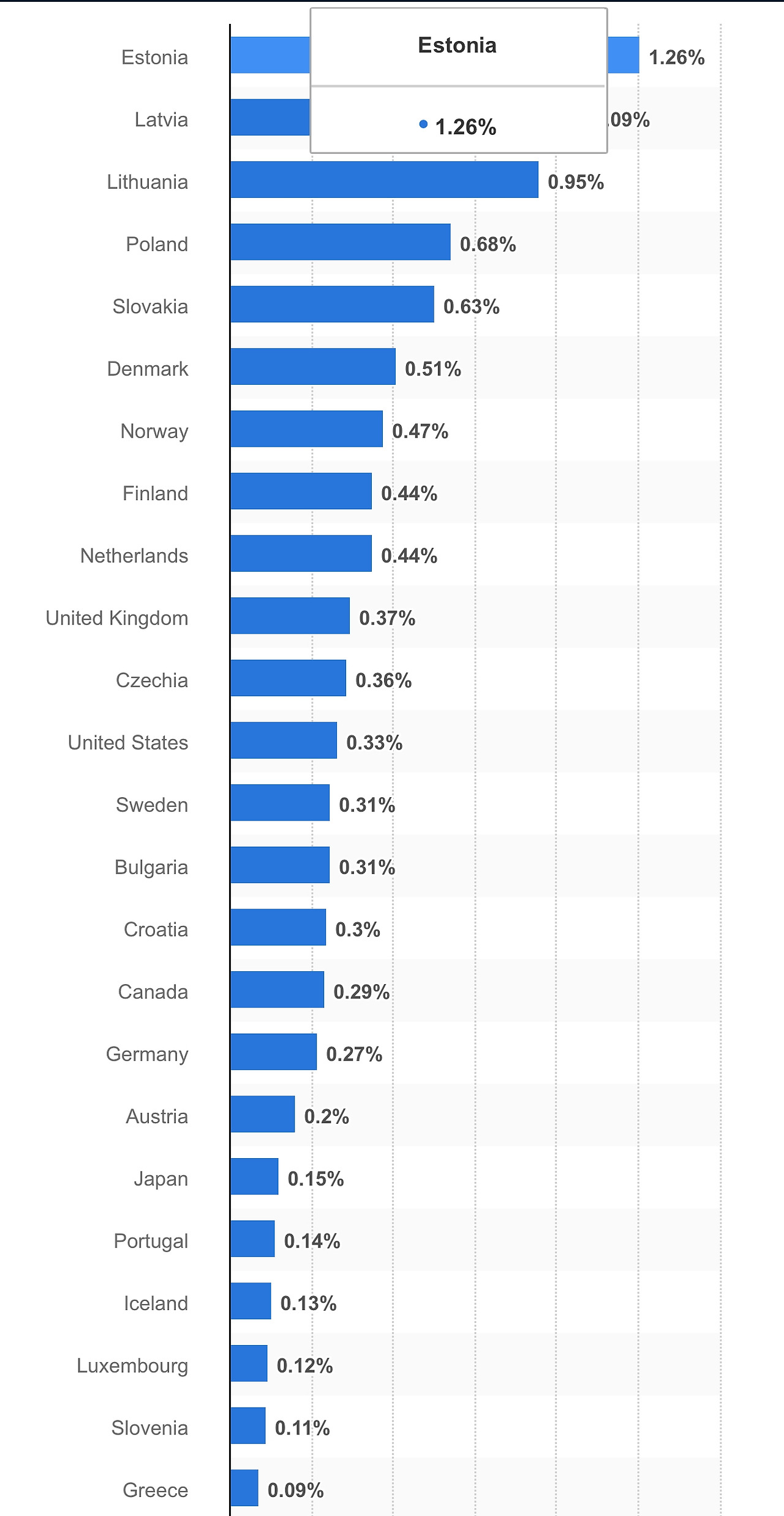 주요 국가 중 GDP 대비 우크라니아 전쟁 지원금 수가 약 30위, 0.05%로, 0.04%인 한국과 별 차이도 없으면서 목소리는 크게 내고, 난민 받기 싫어하기로는 둘째가 서러워하는 작태를 보면 꼴값을 떤다는 말이 절로 나온달까.
