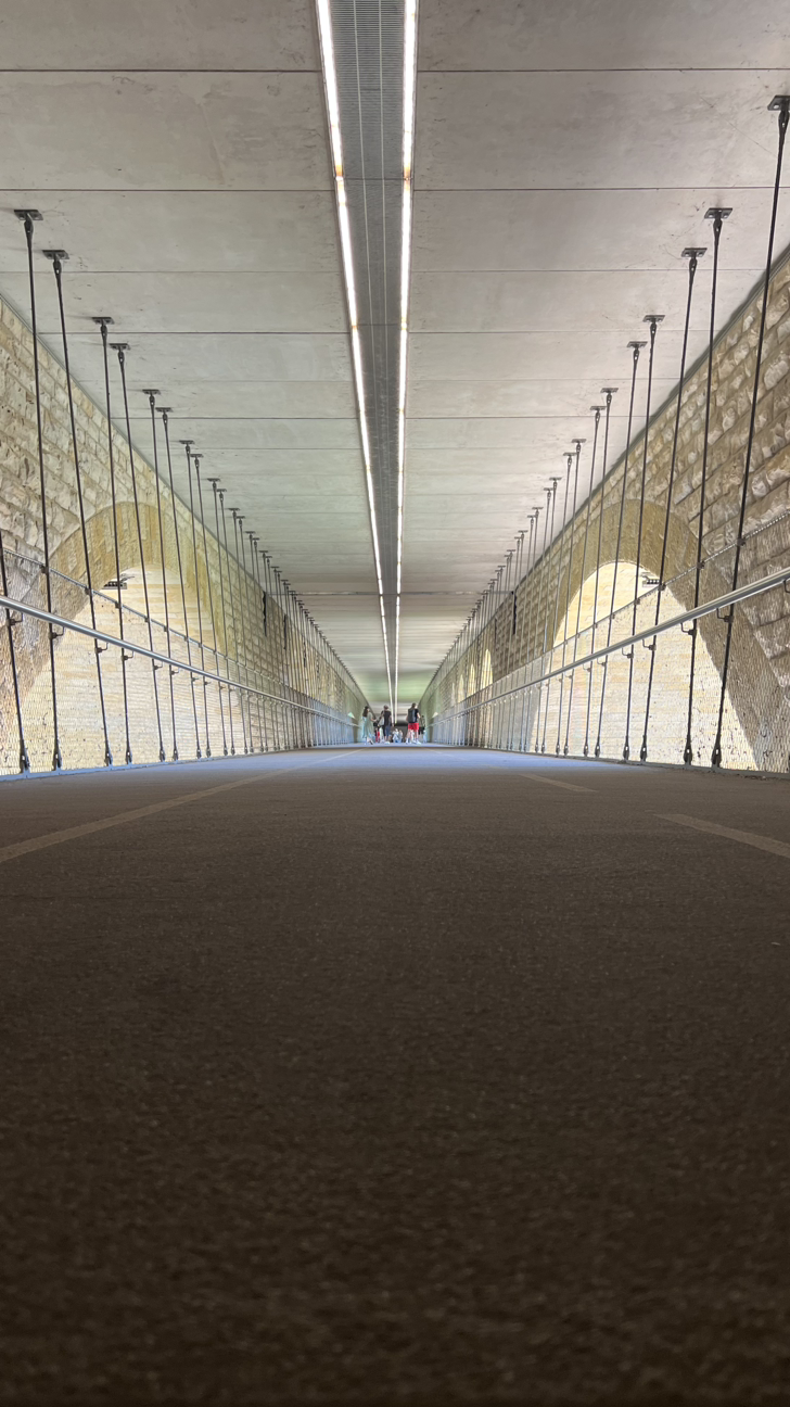 다리 아래 그늘에서 운동하는 사람을 지나쳐 다리 내부를 잠시 둘러봤다. 차량이 다니지 않음에도 아스팔트가 깔려 있는 모습이 이색적이었다.