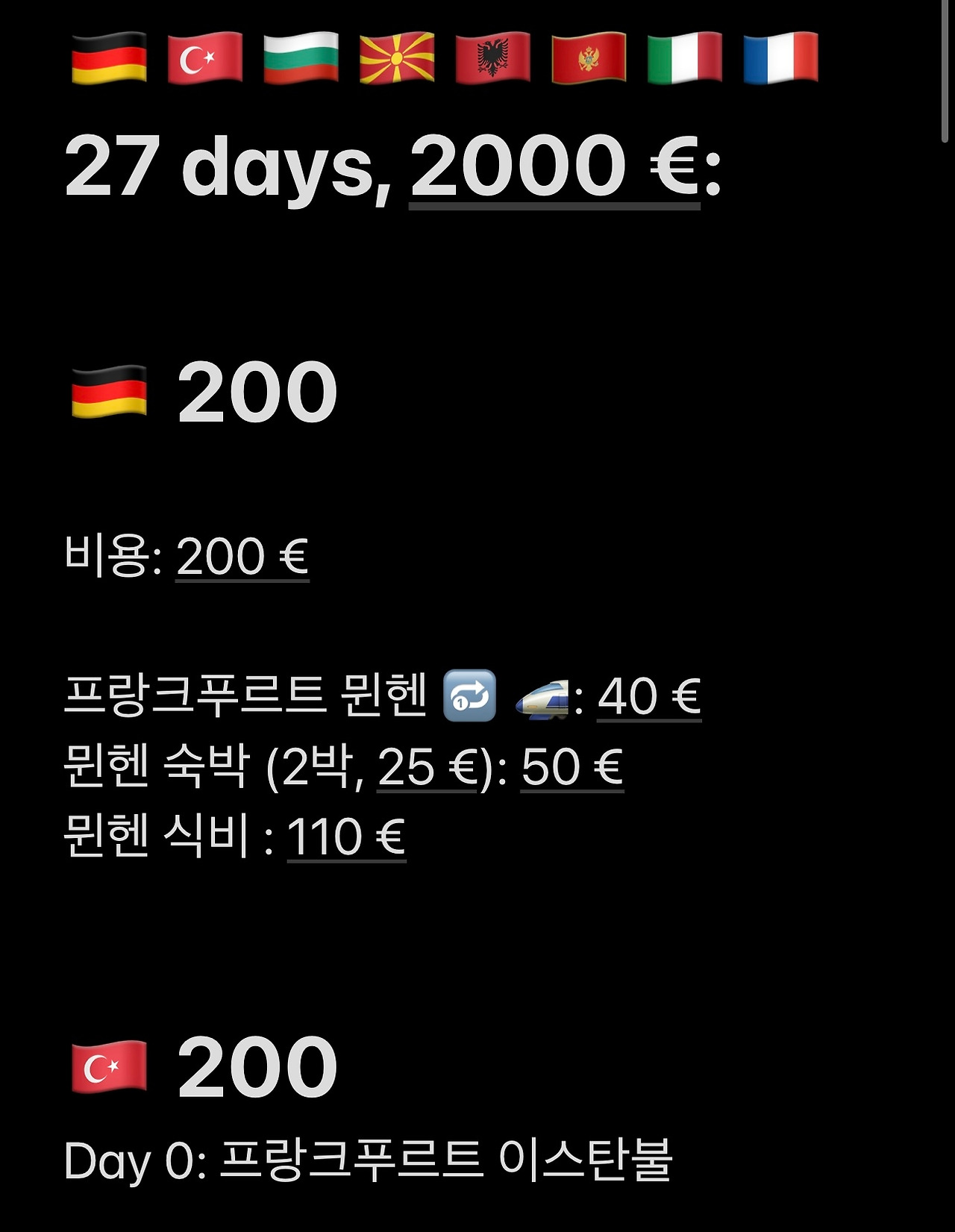 슬로베니아의 경우, 숙박비는 박당 30유로 정도로 합리적이었으나, 스트라스부르(Strasbourg)행 기차를 잡아탄 후 버스로 11시간 25분을 가야 했다. 과테말라에서 8시간에서 10시간 가까이 되는 버스에 타본 경험이 있긴 하다만, 연기되기 일쑤인 플릭스버스(Flixbus)의 특성상 실제 이동시간은 12시간을 초과할 게 뻔했기에, 왕복에 하루가 넘는 시간을 태울 수는 없다는 결론에 이르렀다. 허리를 감안하면 결코 선택해서는 안될 악수.