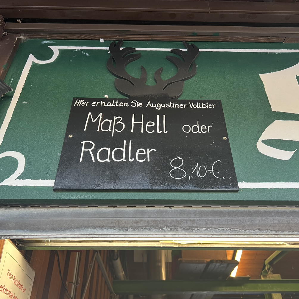 점심과 마찬가지로 아우구스티너를 한 잔 주문했다. 라들러는 약하다는 말을 어디서 들은 적이 있어 마찬가지로 가장 기본적인 헬로 주문.