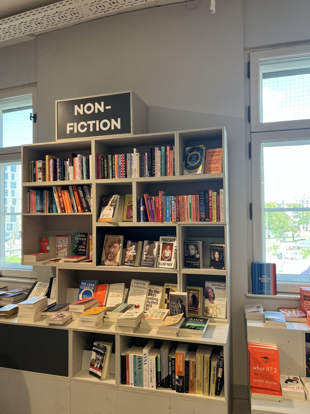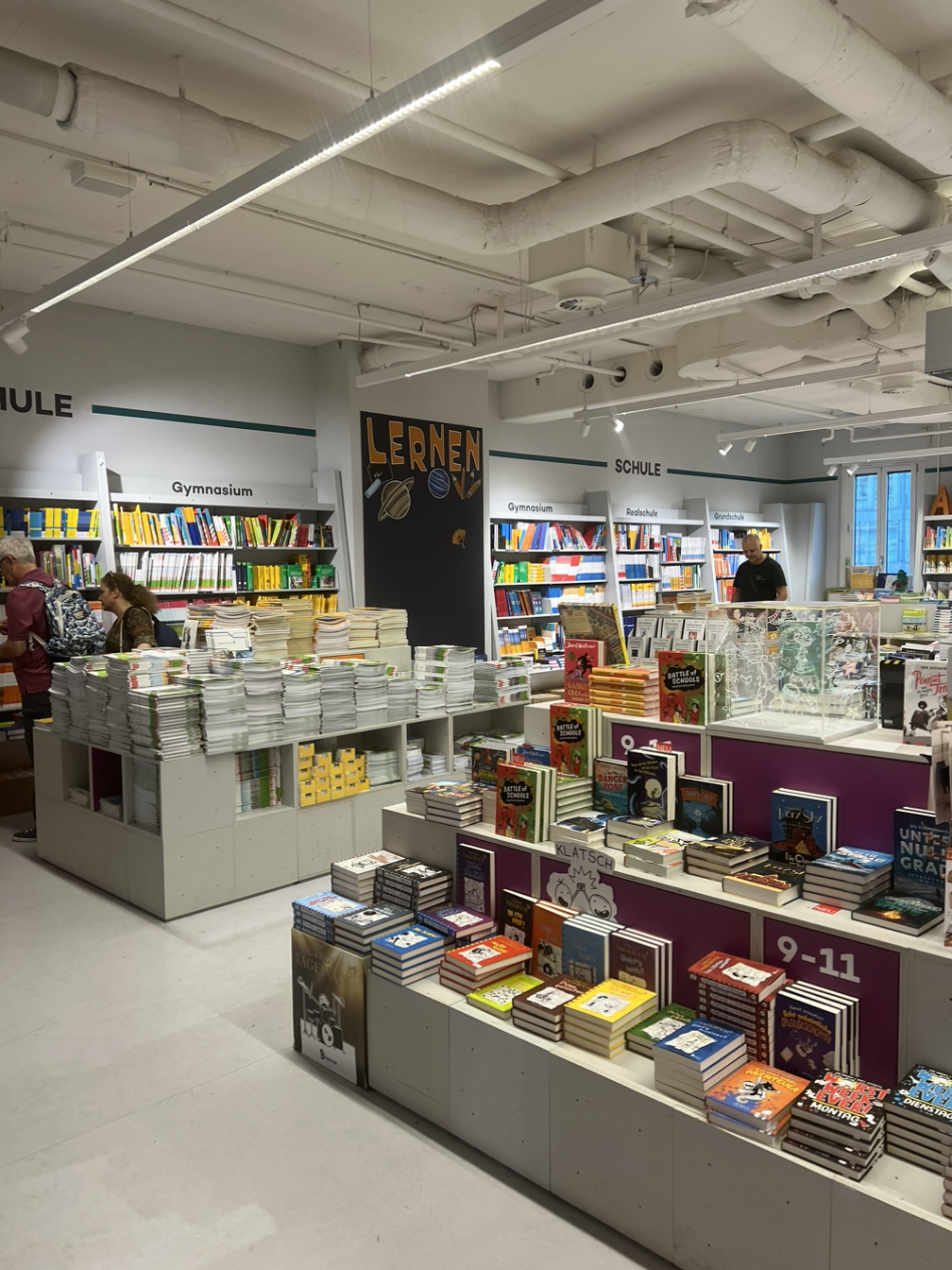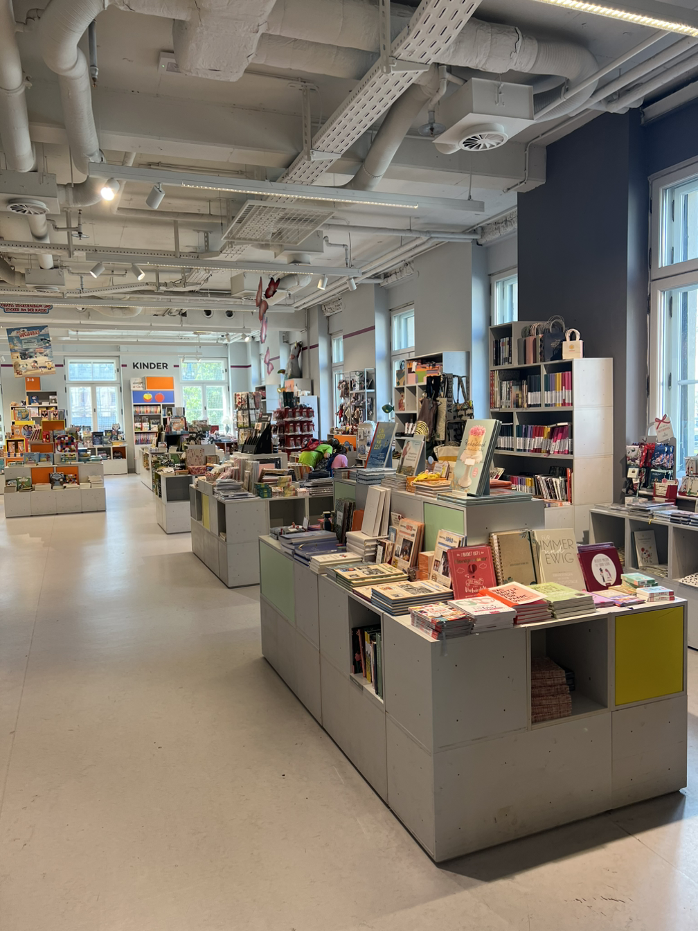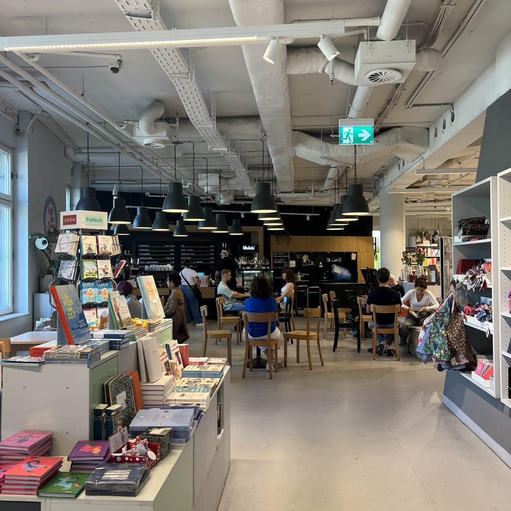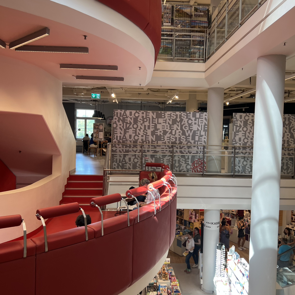 2층의 절반은 아동/청소년 코너에 할당돼 있다. 머지않아 한국에서는 축소되거나 아예 사라질 코너지만, 출산율이 아직 1.5 수준인 독일에서는 여전히 상당한 공간을 차지하고 있었다. 아이들이 즐길 수 있는 장난감도 적지만 배치해 놓았다. 다만 카페에서 책을 읽는 사람들에겐 좋다고 할 수는 없는 구성 아닐까. 문제집 혹은 교과서로 추정되는 책들이 많지 않은 것도 한국과는 차이를 보였다.