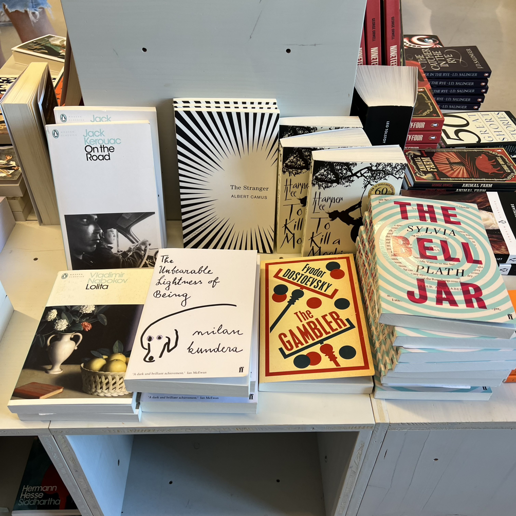 한국에서도 동일한 표지를 사용하는 밀란 쿤데라 작 '참을 수 없는 존재의 가벼움'과 알베르 카뮈의 '이방인'에도 눈이 갔고,